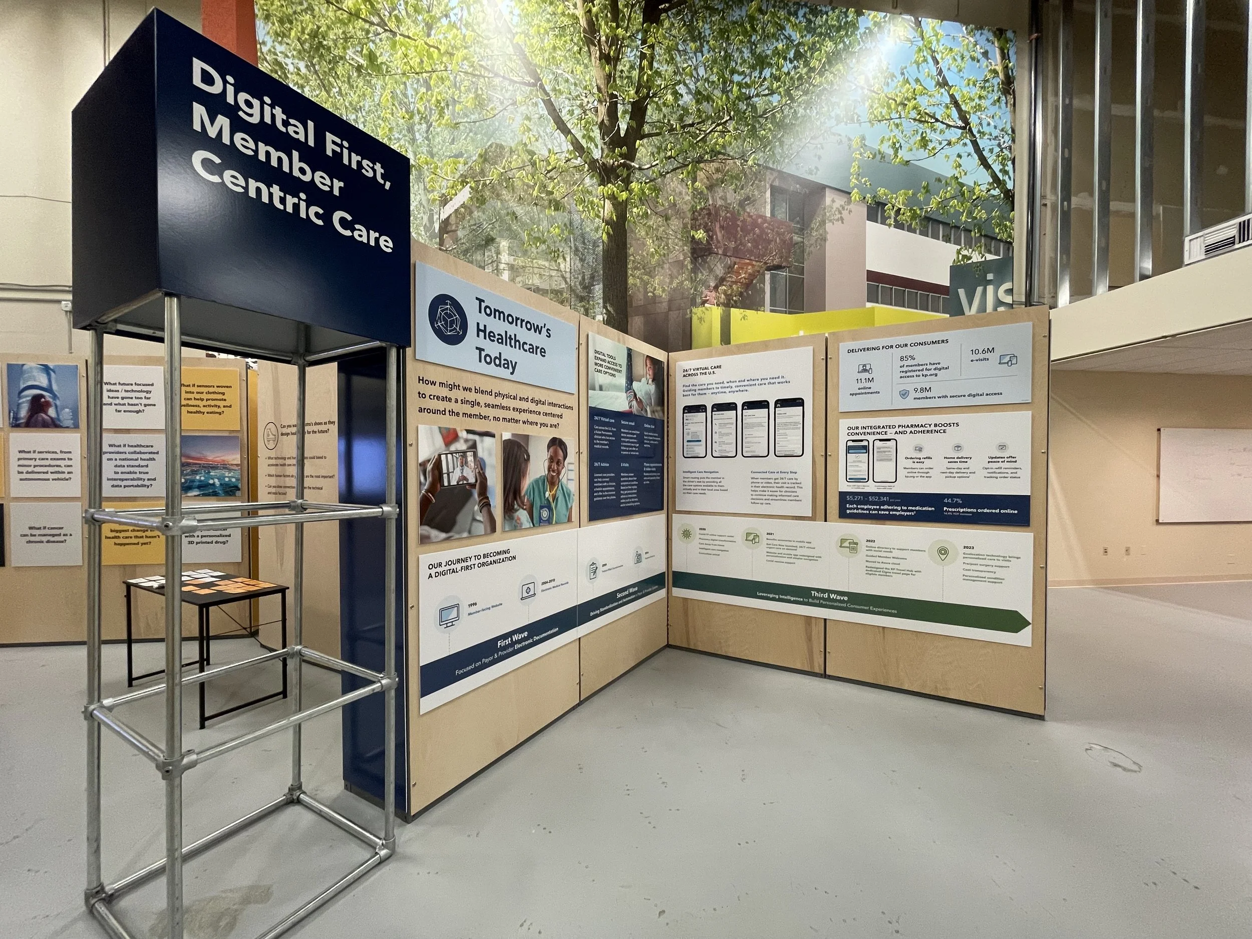 I led the development of a new tour and exhibit experience for the Kaiser Permanente Garfield Innovation Center (GIC), an eight-month initiative designed to reintroduce visitors to the center’s role in advancing healthcare innovation. The work was for internal and external audiences, from Kaiser Permanente teams to industry partners, with the goal of creating a more engaging, intuitive, and memorable way to experience the GIC. Balancing strategy and design, I guided a small team through an extremely tight deadline, serving as project manager and creative director across both physical and digital touchpoints. My role included producing and designing the exhibit space, leading the redesign of the center’s website, and art directing several short videos that tied the story together. The result was a cohesive ecosystem that elevated how the GIC’s story is told—earning praise from leadership and visitors alike for its clarity, creativity, and impact.